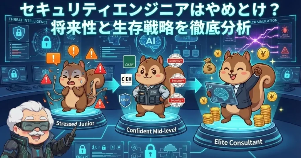 ボス~!ネットで『セキュリティエンジニア やめとけ』って検索したら、怖い情報ばかり出てきたっす!AIに仕事を奪われるとか、激務で帰れないとか……。僕、エンジニア辞めるしかないんすか!? 落ち着けチップス。ネット上の情報は、あくまで『一部の事実... -