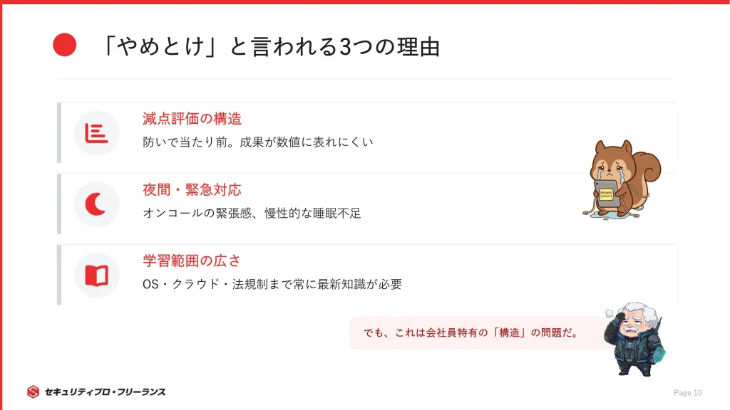 セキュリティエンジニアは責任が非常に重い一方で、社内での評価や年収に直結しにくいという構造的な悩みがあります。