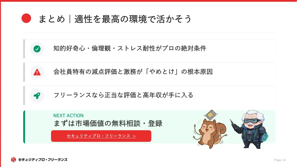 独立を考えるなら、セキュリティプロ・フリーランスへの登録をおすすめします。