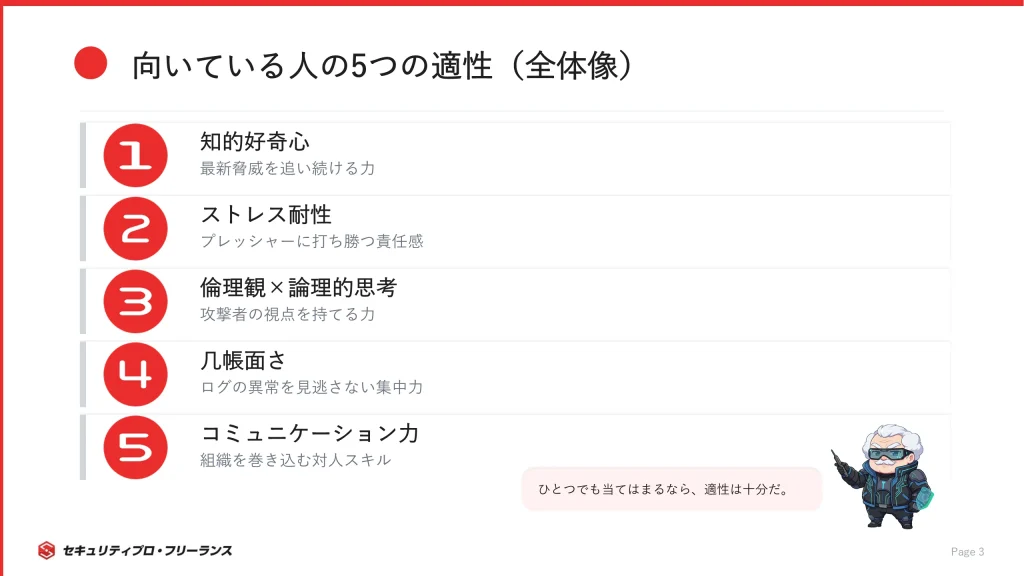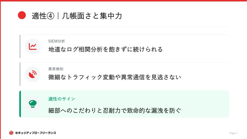 細部へのこだわりと忍耐力を持つ人は、セキュリティ領域で確実に実績を積めます。