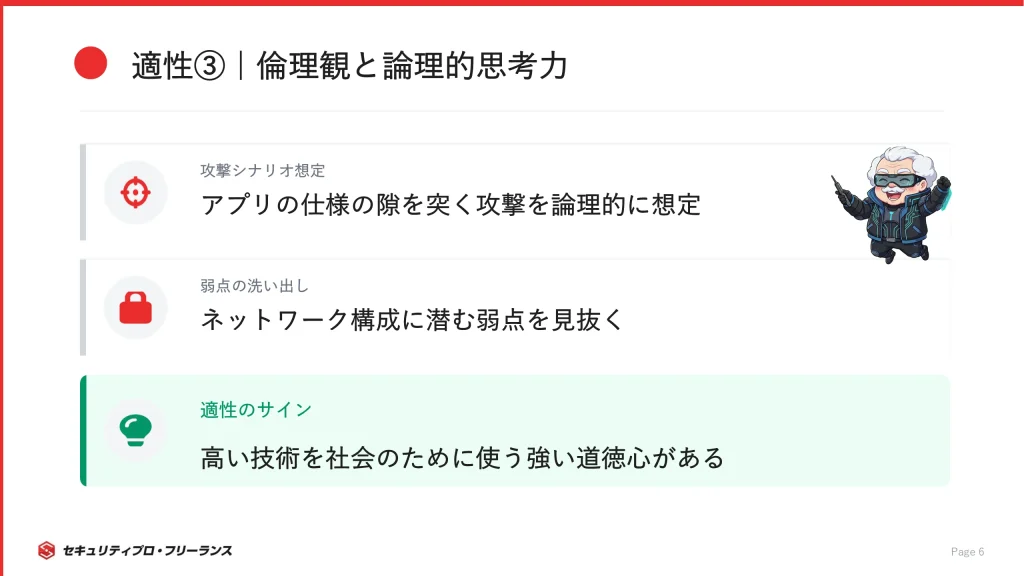 攻撃者の視点を持てる「倫理観」と「論理的思考力」