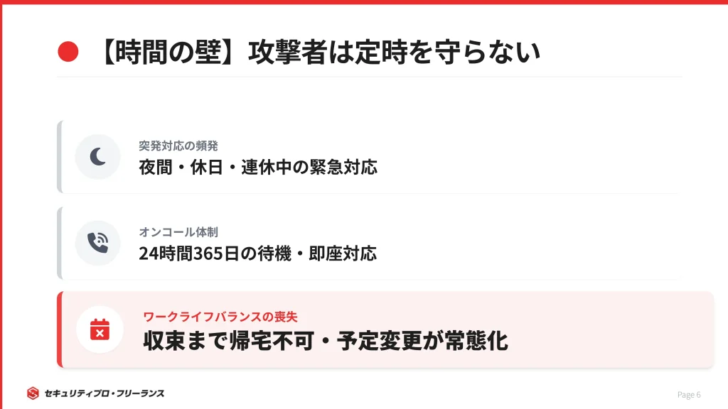 【時間の壁】攻撃者は定時を守らない!突発的な緊急対応