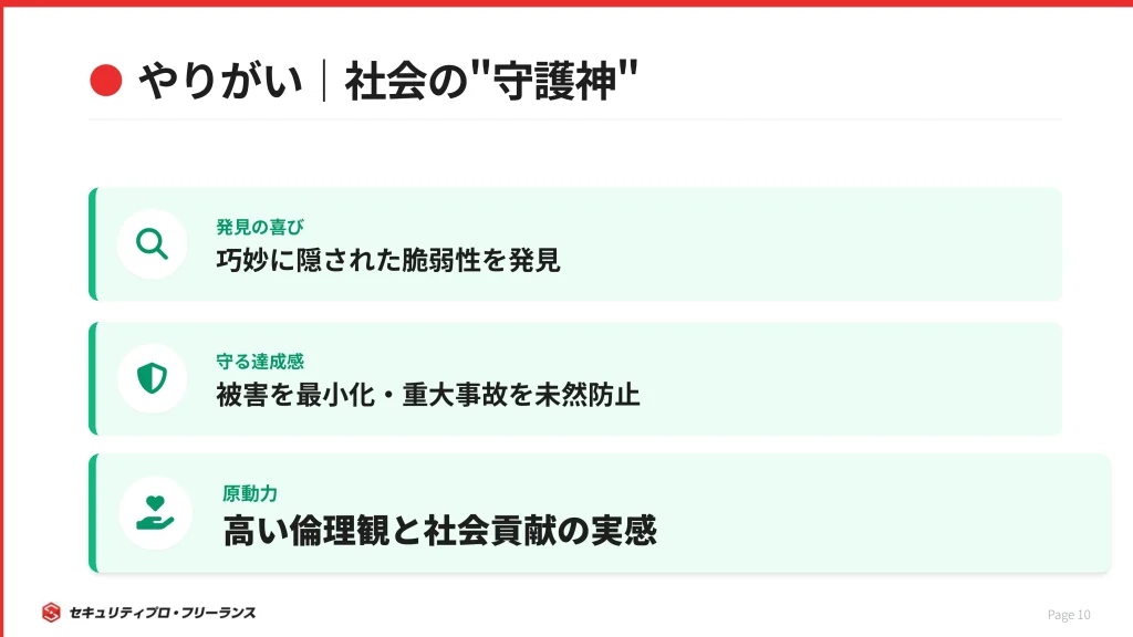 ホワイトハッカーならではのやりがいを感じる瞬間は以下の通りです。